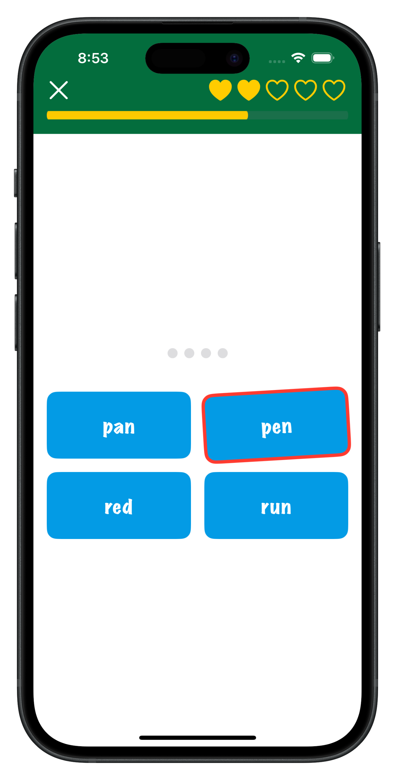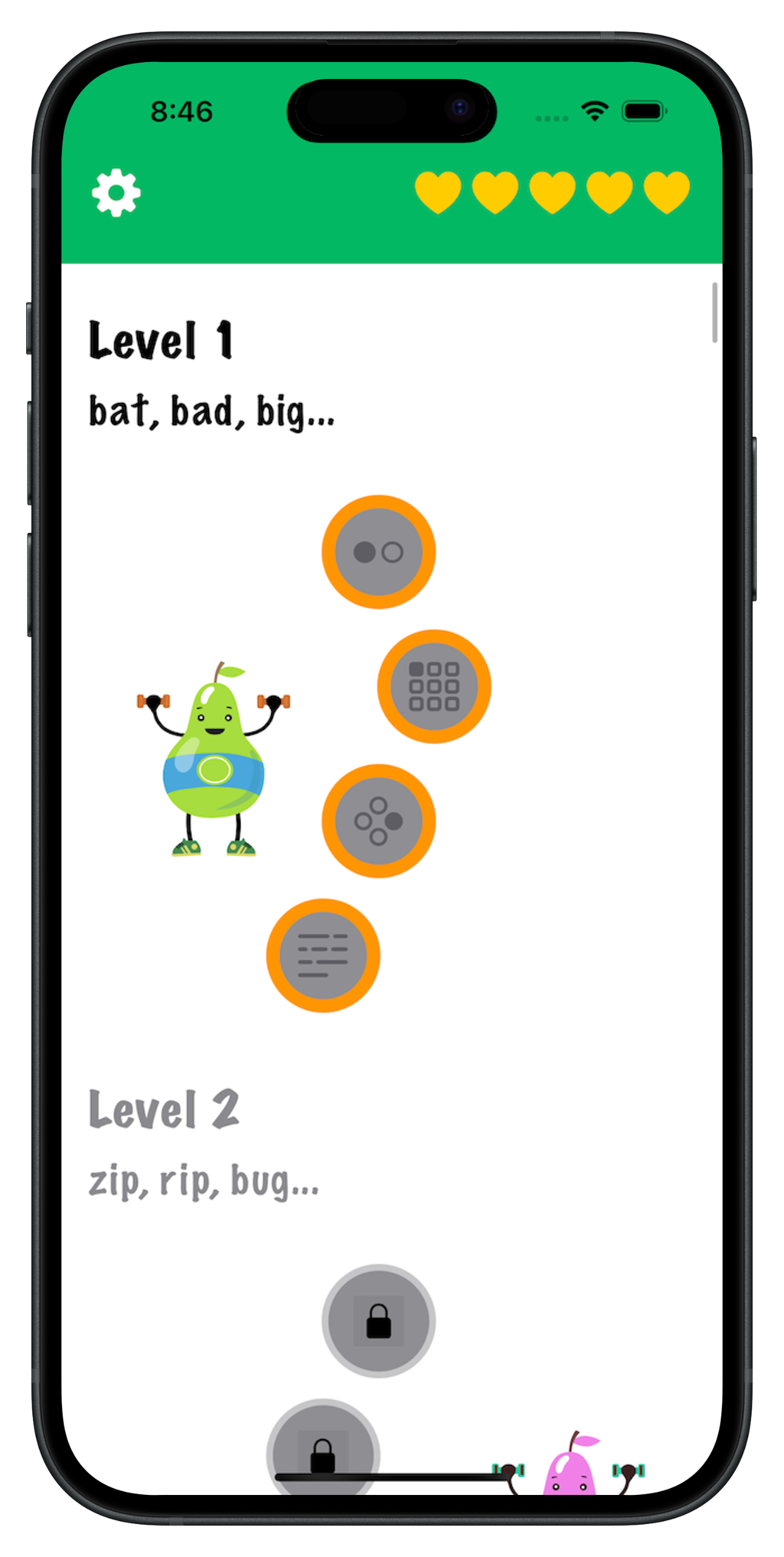 PEAR Up makes listening practice simple and fun. Just listen to the word, then tap your answer. Each level has 4 different game types to keep things interesting—from matching word pairs to filling in silly sentences.